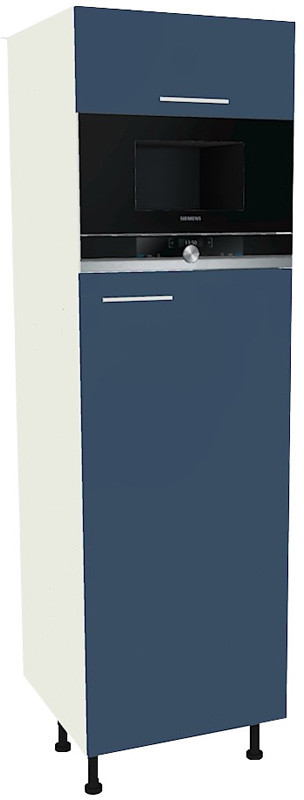 Meuble colonne pour micro-ondes et réfrigérateur encastrables, avec espace de rangement en partie haute, 1 porte ouverture à l'italienne.