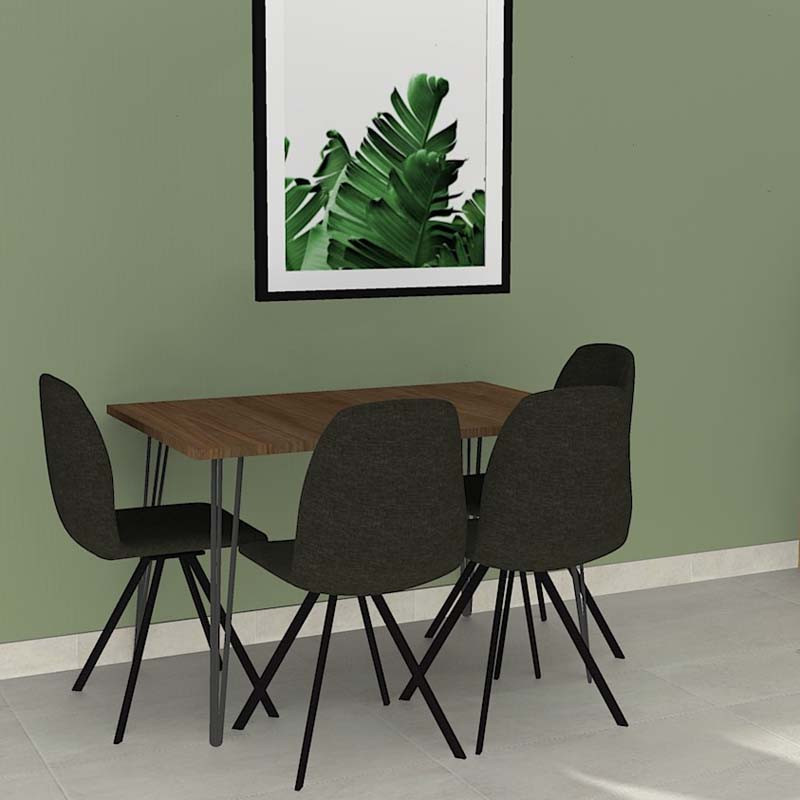 Table à manger plateau rectangulaire avec des pieds épingles.